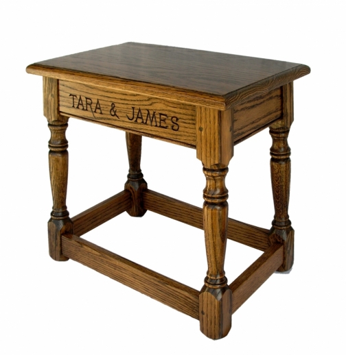 A small oak table to stand beside a favorite chair, a bench in the front hall for putting on your shoes, or catching your keys and gloves, or a place to display a vase of dried flowers. This Memory Bench shown is 12" X 18" X 18" tall. (This is the same height as the seat of a standard dinning chair.)