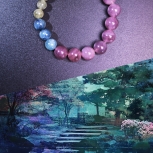 A design inspired by the character Oborozukuyo of Japanese classic novel The Tale of Genji. Oborozukuyo in English means Hazy Moonlight Night. This bracelet is composed of Moonstone, Pink Quartz, White Quartz and Yellow Rutilated Quartz and contains power of enhancing intuition and self confidence.