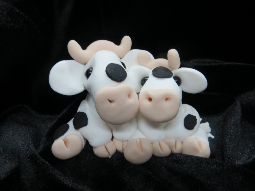 Mommy & baby polymer clay cows