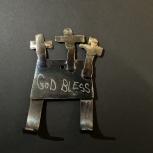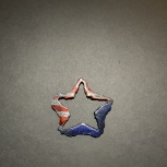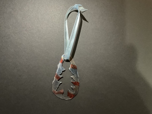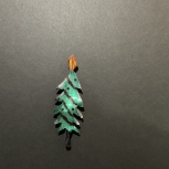 This item is a Christmas tree shaped ornament cut out of mild steel scrap metal using a plasma cutting torch. Colored with sharpie markers and heat treated using a propane blow torch to give it a clear haze effect. I then used a clear coat to enhance the red in the art piece.