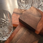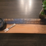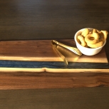 • Maple hardwood • Teal, aqua, and ghost-pearl resin • Food-safe oil