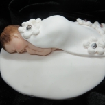 This penguin couple look so happy. Their outfits are trimmed with a teal color; the band on his hat and his bow tie, her veil and head piece and her bouquet and trailing ribbon. They measure 3 1/2 inches tall and 5 inches round and are made from polymer clay which has plastic and resins making them strong. Over time they might need repair - use a super glue gel for best results.