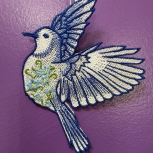 This spirited embroidered cheerleader ornament captures energy and movement with vibrant red, white, and blue stitching. Featuring detailed pom-poms with textured fringe, a cropped cheer uniform, and athletic stance, this design has wonderful depth and playful character. The layered embroidery highlights the outfit details, hair, and accessories, giving the ornament a lively, dimensional look. Finished with a satin hanging ribbon, it’s lightweight and easy to display.
