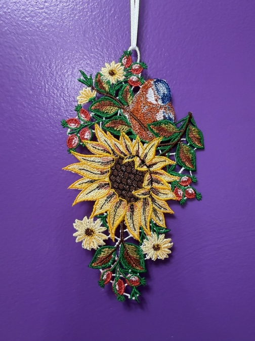bird, sunflower, suncatcher, embridery, ornament