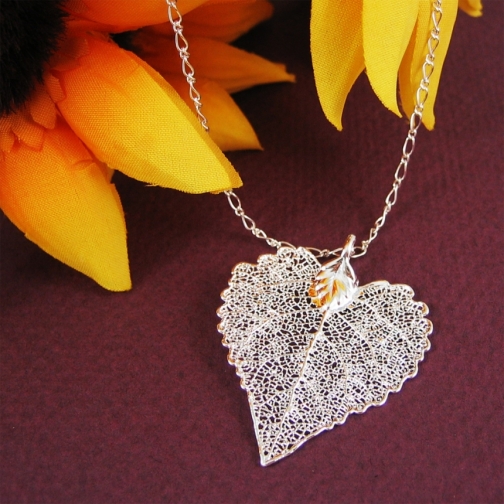 This gorgeous Silver Heart Necklace is one of our real leaf series. A real cottonwood leaf is coated with pure 99.9 Silver. The pendant looks like a cheery heart!